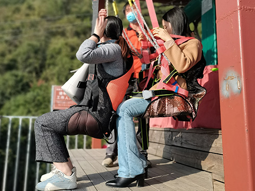透亮的玻璃下是深淵密林,想要觀賞風(fēng)景,又忍不住小腿略略發(fā)抖,真是刺激驚險又好玩!